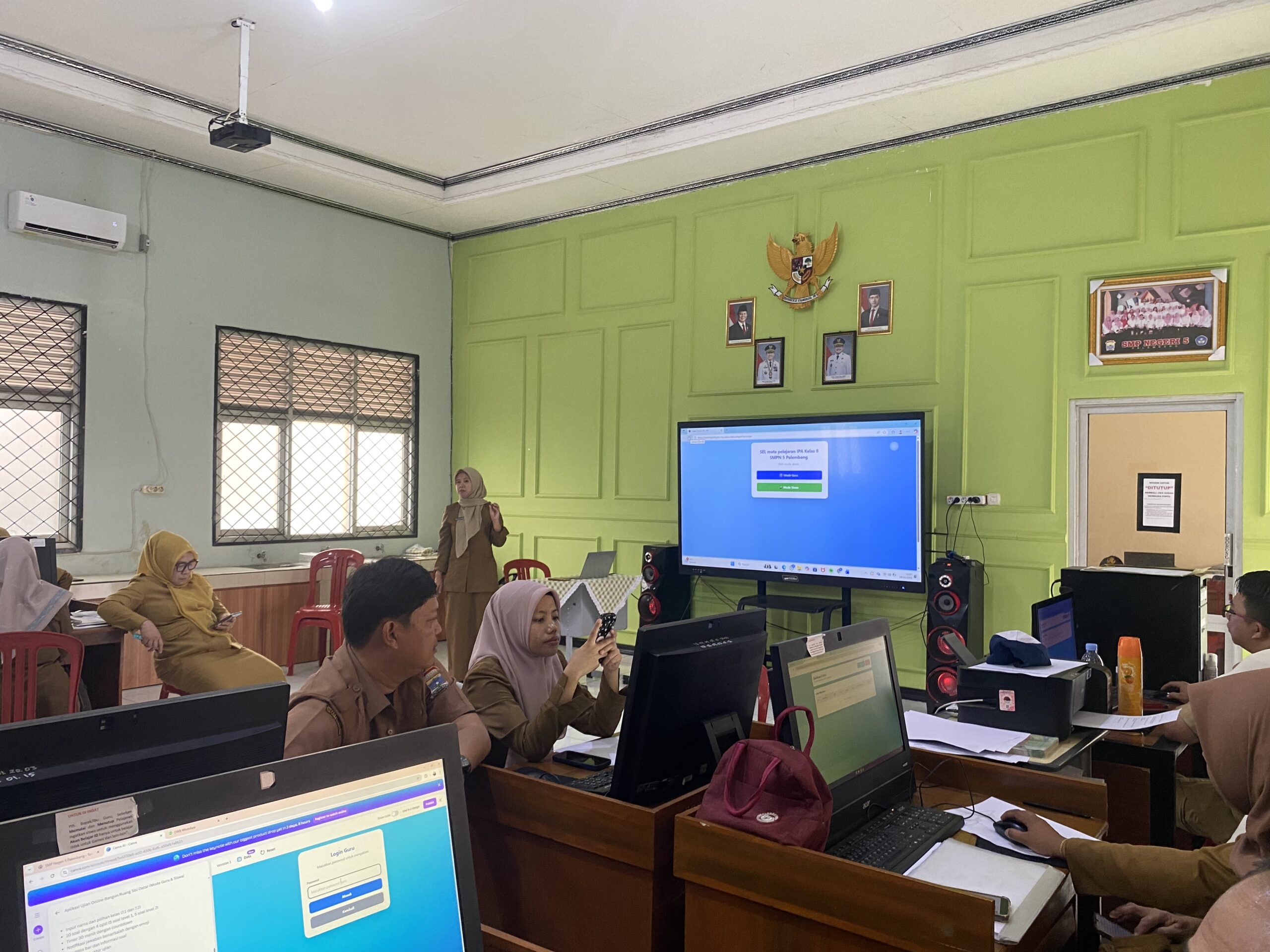 Palembang, 28 Oktober 2025 – SMP Negeri 5 Palembang menggelar kegiatan Pengimbasan Koding dan KAA dengan materi “Koding dan Pemrograman: Membuat Latihan untuk Peserta Didik Menggunakan Canva AI”. Kegiatan ini dilaksanakan di Laboratorium Komputer SMP Negeri 5 Palembang pada pukul 14.20 WIB hingga selesai.